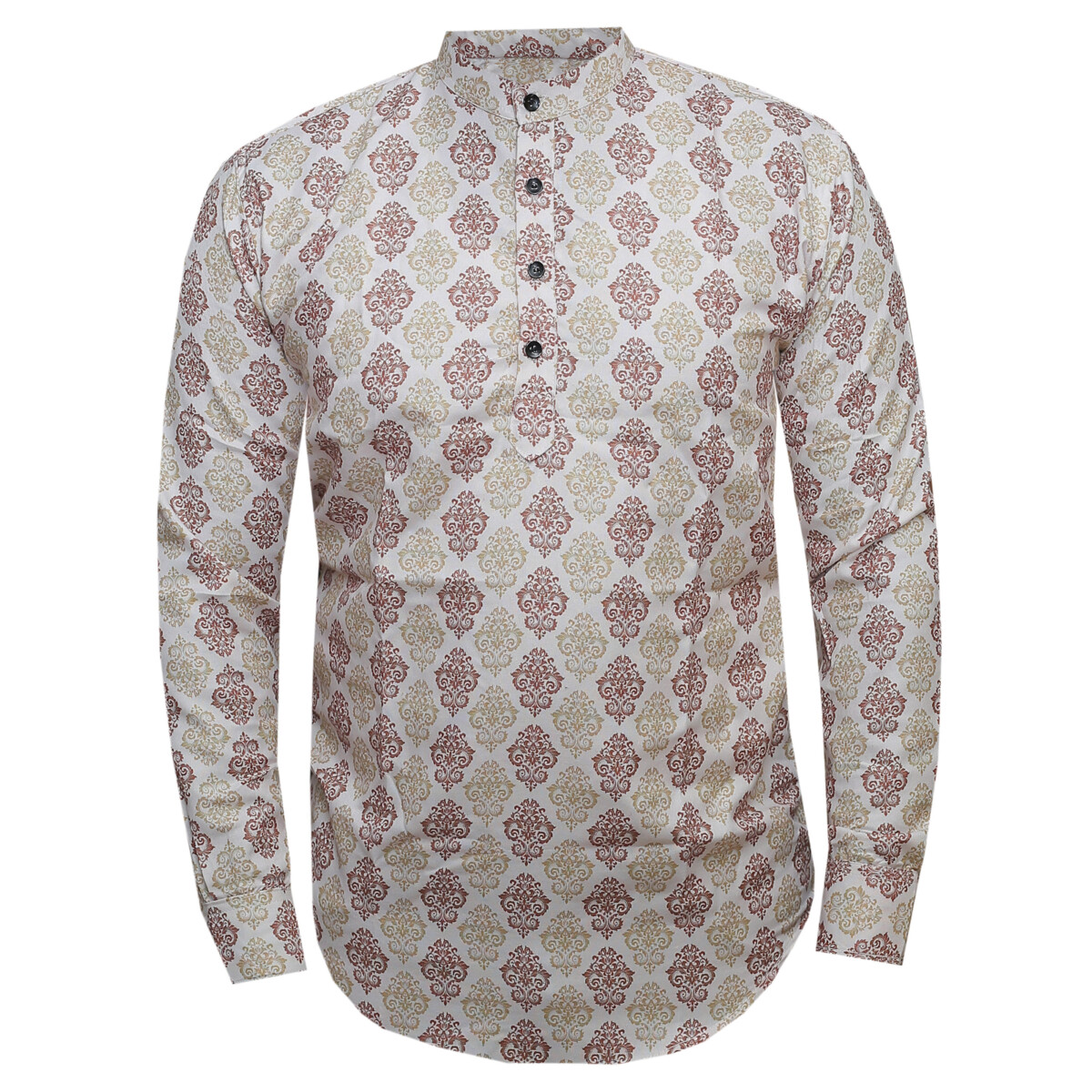 Collarless Shirt with Quarter Button Up Design – Long Sleeved Shirts for Men – Floral Shirts for Men