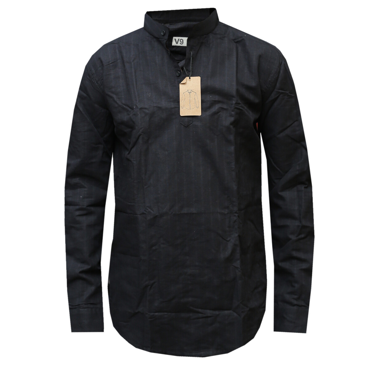 Collarless Black Shirt with T-Shirt Design – The Closed Up Design with only upper chest button up makes for a unique style
