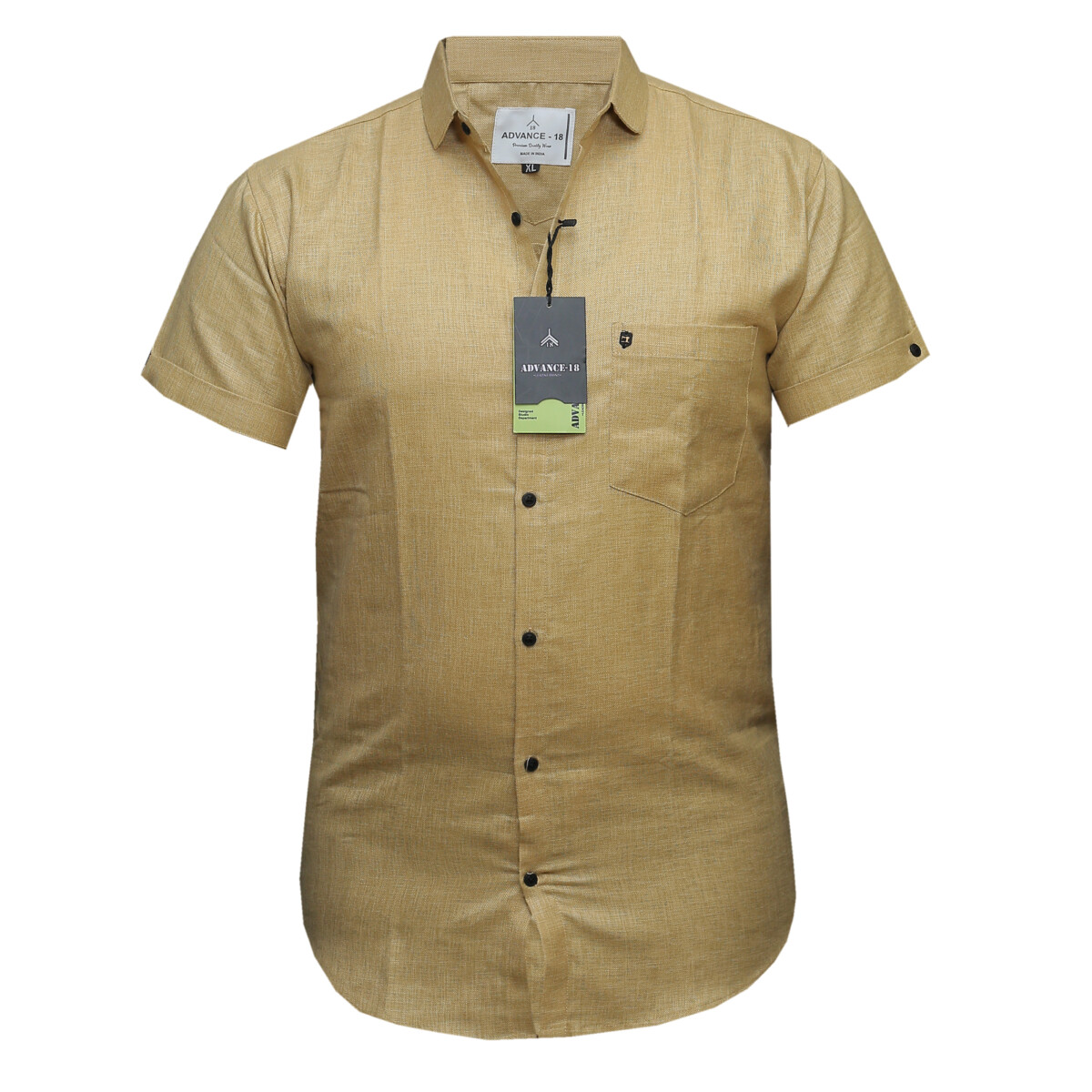 Advance 18 Mustard Linen Shirt – Short Sleeved Shirt – Plain Colour – Linen Shirts for Men