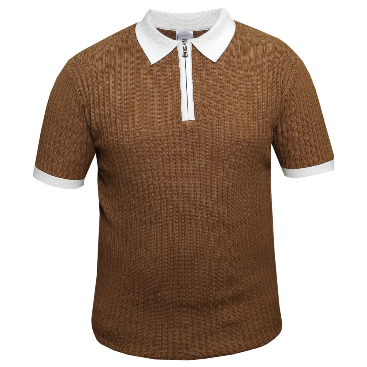 Golden Brown Polo T-Shirt with a White Collar and Quarter Zipper – Knitted T-Shirts / Sweater T-Shirts