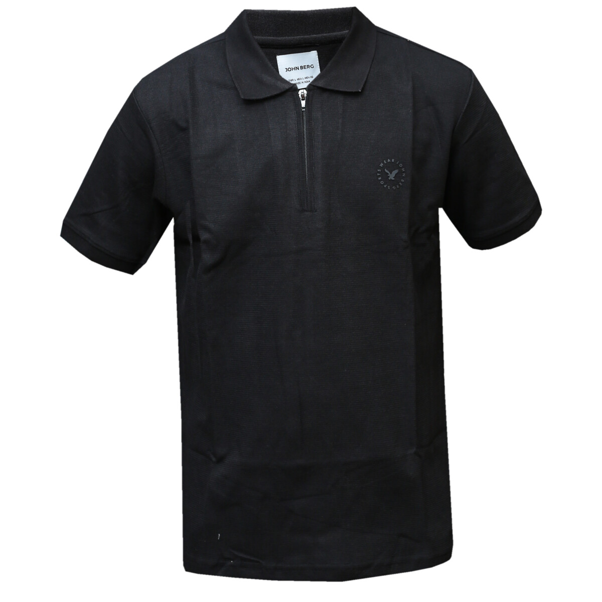 Plain Black Polo T-Shirt with Quarter Zip
